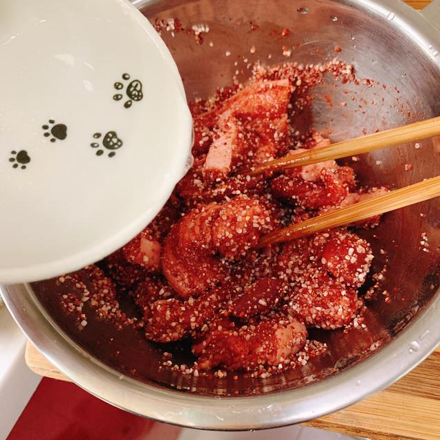 1、 攪拌五花肉的時間稍微長一些,這樣才能讓配料均勻的沾在五花肉上面。