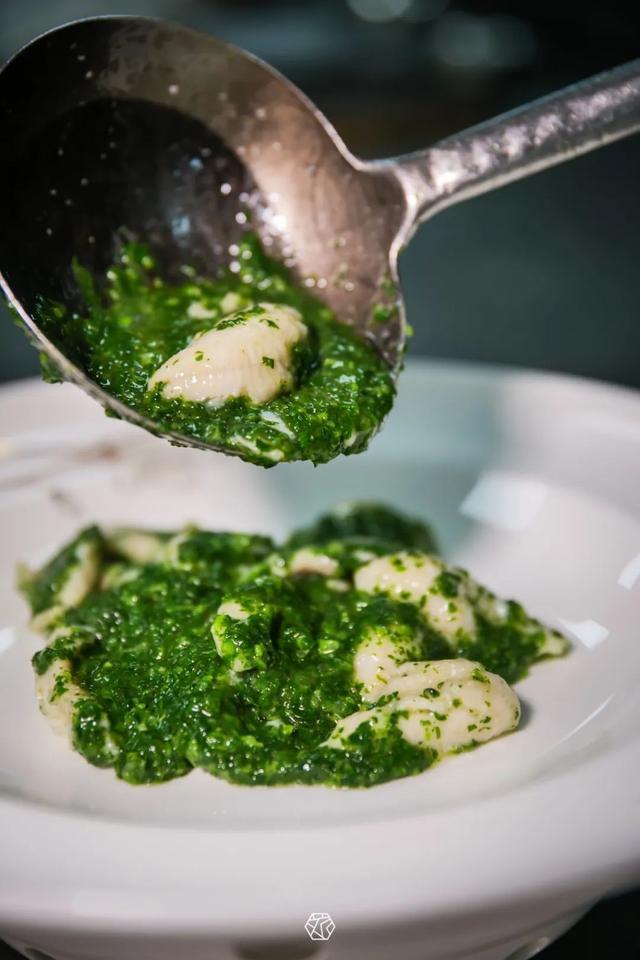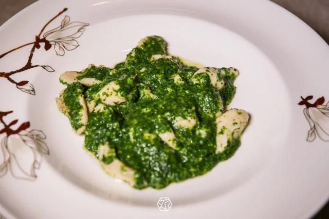 裝入盤中,稍作點綴,粉色的蝦仁與翠色的碧螺春相映成趣。
