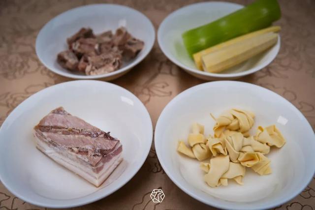 做醃篤鮮,每家有每家的食材配方,有的喜歡加萵筍,有的喜歡加百葉結,但有三樣東西是絕對少不了的,那就是春筍、鹹肉和鮮肉。而醃篤鮮之名,其中的“醃”指的便是鹹肉;“篤”是蘇州話,即用小火燉煮的意思;“鮮”則是指鮮肉和鮮筍。
