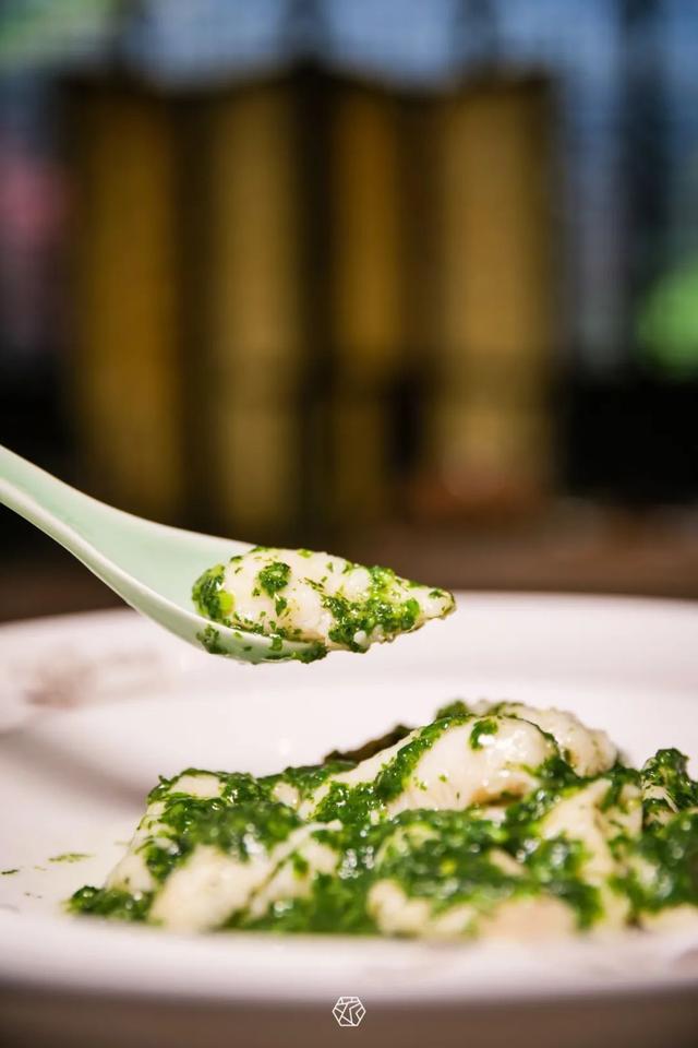 潔白的塘片,裹著一層細密的薺菜末,香氣撲鼻。薺菜和塘鱧魚都以鮮美著稱,兩者相容,那滋味真是“只應天上有”。