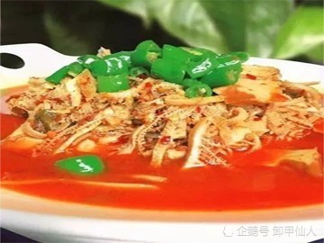 1、鍋入生菜籽油15克、雞油10克燒至五成熱,下入薑片10克爆香,添入混椒汁500克大火燒沸,下入毛肚絲350克、豆幹200克中火煮2分鐘,調入味精3克、白胡椒粉2克再煮1分鐘,連料帶湯盛入盆中。