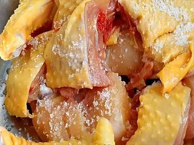 今天來做一道簡單又健康的山藥燉雞湯。首先將雞肉洗乾淨切好,然後加點鹽跟胡椒粉,把雞肉醃製入味。醃的時候可以用手多按摩幾下,讓雞肉能把所有的調味都吃進去。
