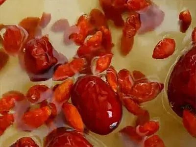 切好的山藥放到水里面,再次將他跟空氣隔絕開來,以防止它變黑。我還加了點枸杞跟紅棗,讓這道菜看起來更加的鮮豔,而且營養價值也更為豐富。新疆紅棗跟枸杞放到一個乾淨的碗中。