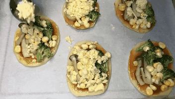 5.放入烤箱中,將烤盤置於中層220℃,烤12~15分鐘,烤到芝士表面有點焦黃就好。
