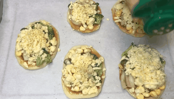 輔料:蕃茄醬、芝士碎、黑胡椒粉